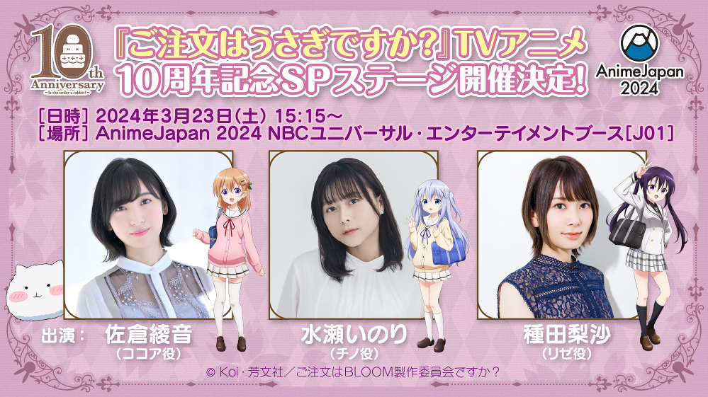 3月23日(土)、24日(日)に開催するAnimeJapan 2024内、NBCユニバーサル・エンターテイメントブースにて『ご注文はうさぎですか?』の出展が決定!